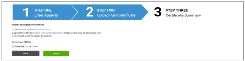 Hinweis: Diese Apple ID wird nur für die Erstellung des APNS-Zertifikats verwendet. Diese Apple ID hat nichts mit den Geräten zu tun und die Geräte werden nichts von dieser Apple ID wissen. Außerdem benötigen Sie Zugang zu dieser Apple ID, um das APNS-Zertifikat zu erneuern. Es wird daher empfohlen, eine generische Apple ID zu verwenden und die Anmeldedaten zu dokumentieren. Bevor das APNS-Zertifikat abläuft, wird eine Erinnerung an die verwendete Mail-Adresse der Apple ID gesendet.
