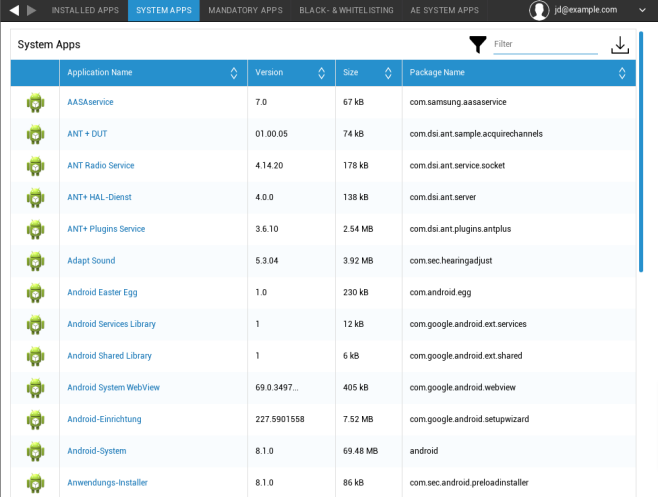 Unter „System-Apps“ werden alle Apps und Dienste aufgelistet, die bereits von Ihrem Gerätehersteller auf dem Endgerät installiert wurden.