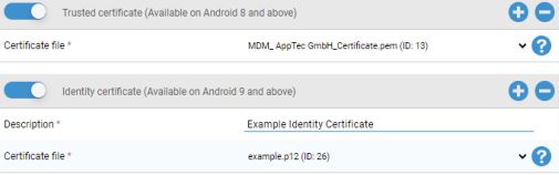 Android 8 oder höher ist erforderlich, um vertrauenswürdige Zertifikate zu verteilen und Android 9 oder höher ist erforderlich, um Identitätszertifikate zu verteilen.
