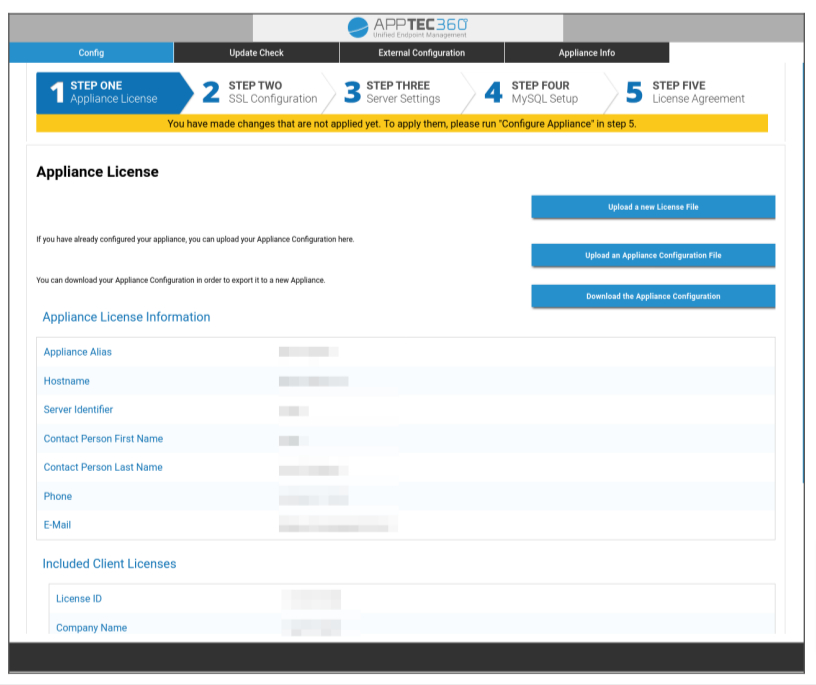 Schritt Eins – Appliance-Lizenz
