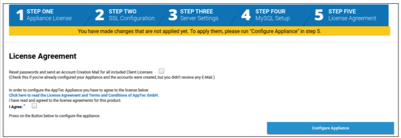2. Markieren Sie „Ich stimme zu“ und klicken Sie auf die Schaltfläche „Appliance konfigurieren“, um die Einstellungen zu übernehmen.