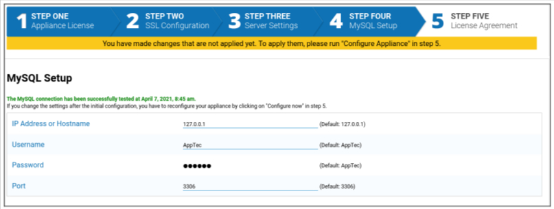 - Wenn Sie die interne Datenbank verwenden möchten, können Sie diesen Schritt überspringen. Andernfalls können Sie die Verbindungsinformationen für Ihren externen Datenbankserver eingeben.