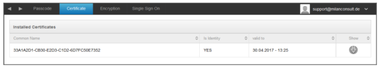 Zeigt die Zertifikate an, die auf dem Gerät verfügbar sind