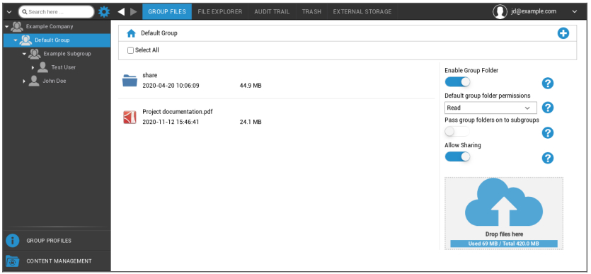 Gruppenordner aktivieren | Wenn aktiviert, haben alle Mitglieder der Gruppe Zugriff auf den jeweiligen Ordner |