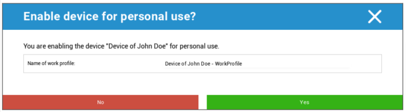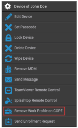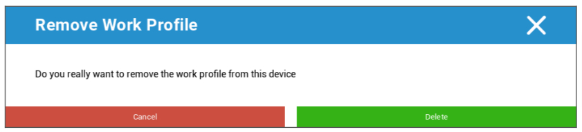 Nachdem Sie das Gerät in den COPE-Modus versetzt haben, können Sie das Arbeitsprofil entfernen, indem Sie auf die Zahnradoption Arbeitsprofil entfernen auf COPE klicken :