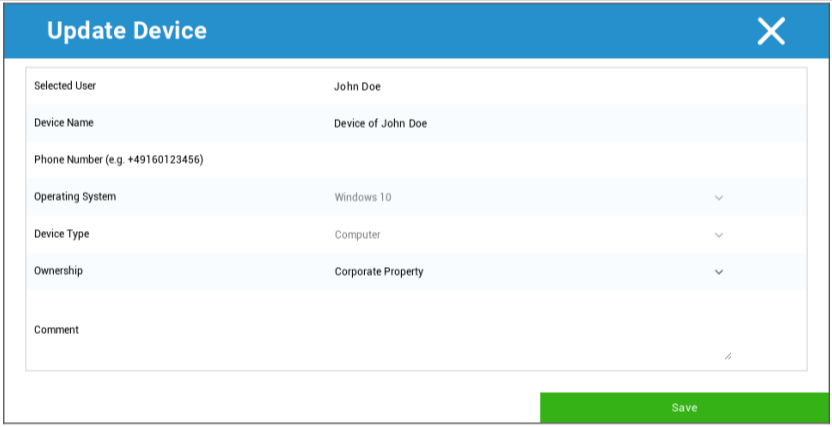 Hier können Sie eine Vielzahl von Informationen über das Gerät aktualisieren.